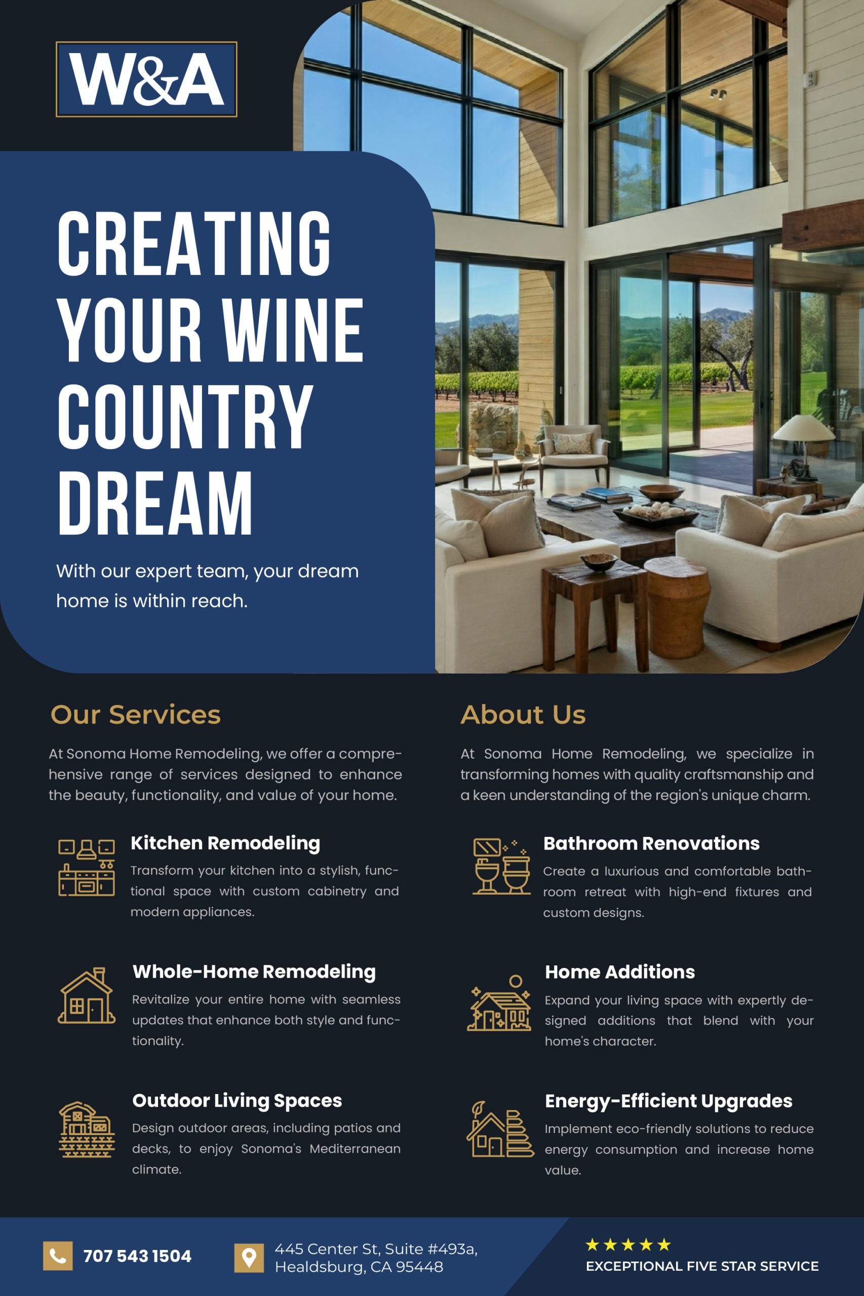 We offer a comprehensive range of home remodeling services tailored to the unique needs of Sonoma homeowners: